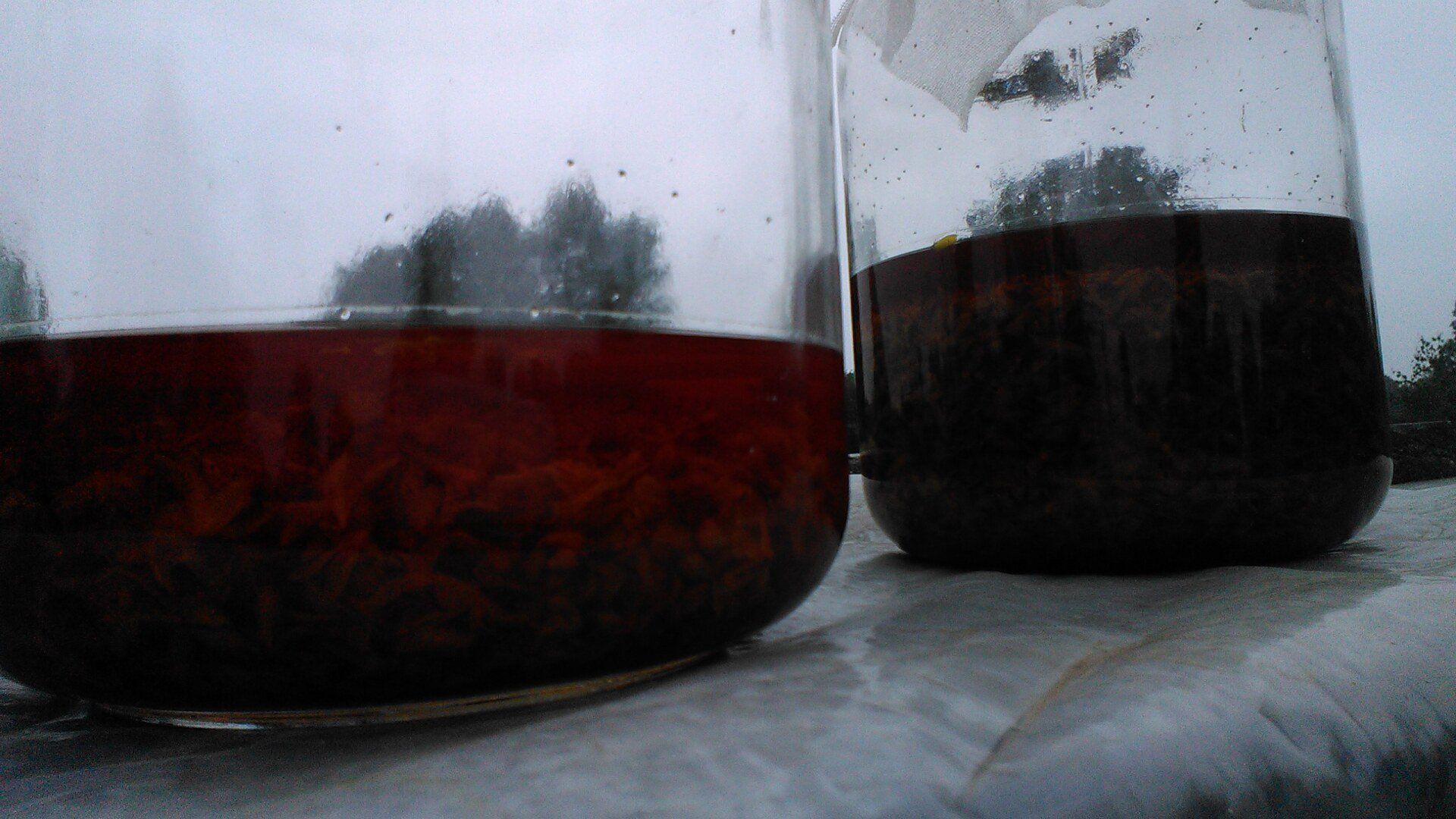 De bloemen die ik elke dag pluk gaan direct in de zalf (goudsbloemen) of in de olie (Sint-Janskruid), die vervolgens in de volle zomerzon te trekken wordt gezet.